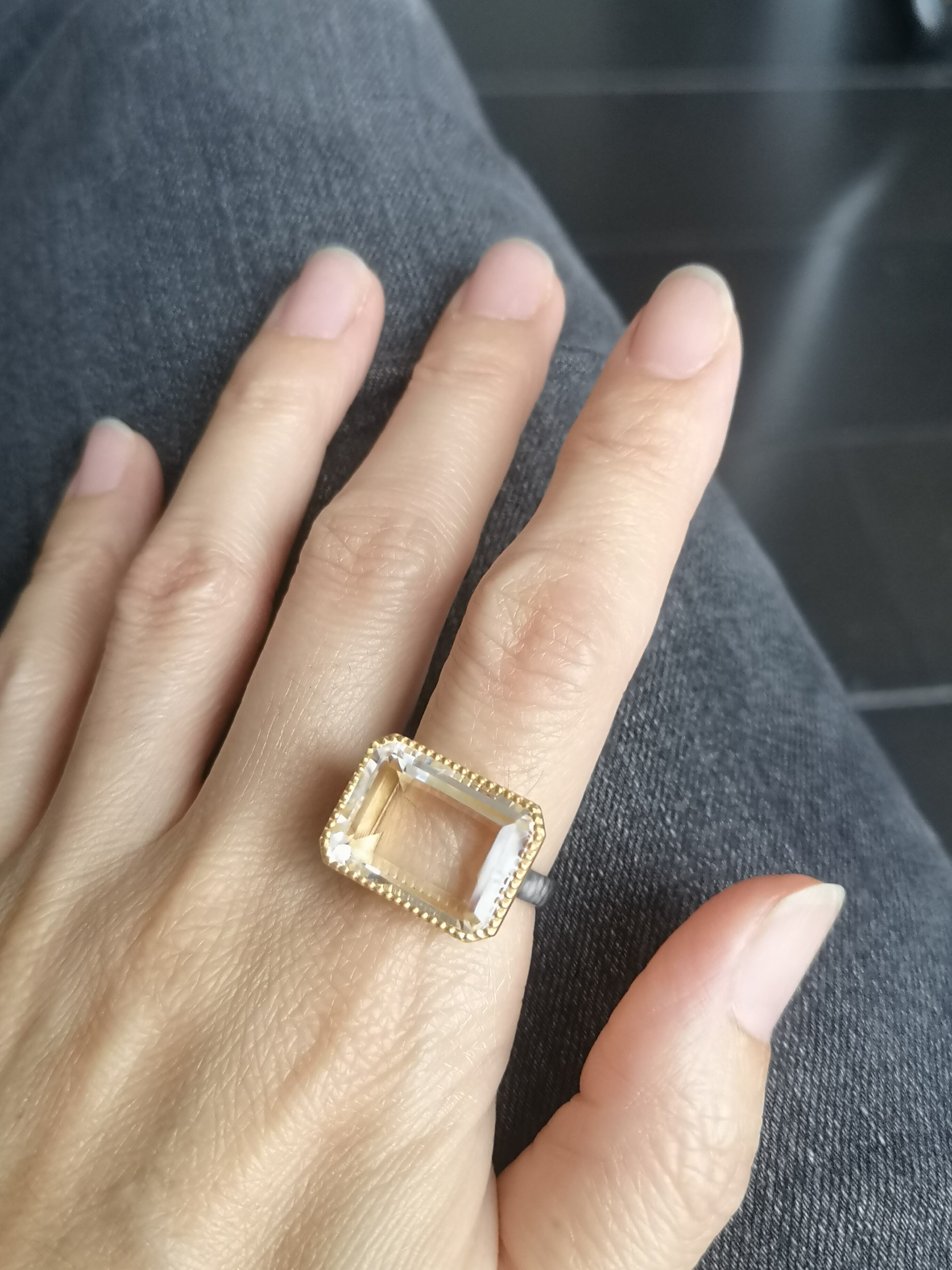 大きな大きなクリスタルのリングです。ボリューム感があり、つける指で個性を楽しめます。これからの季節お洒落に指先を飾ってみませんか?