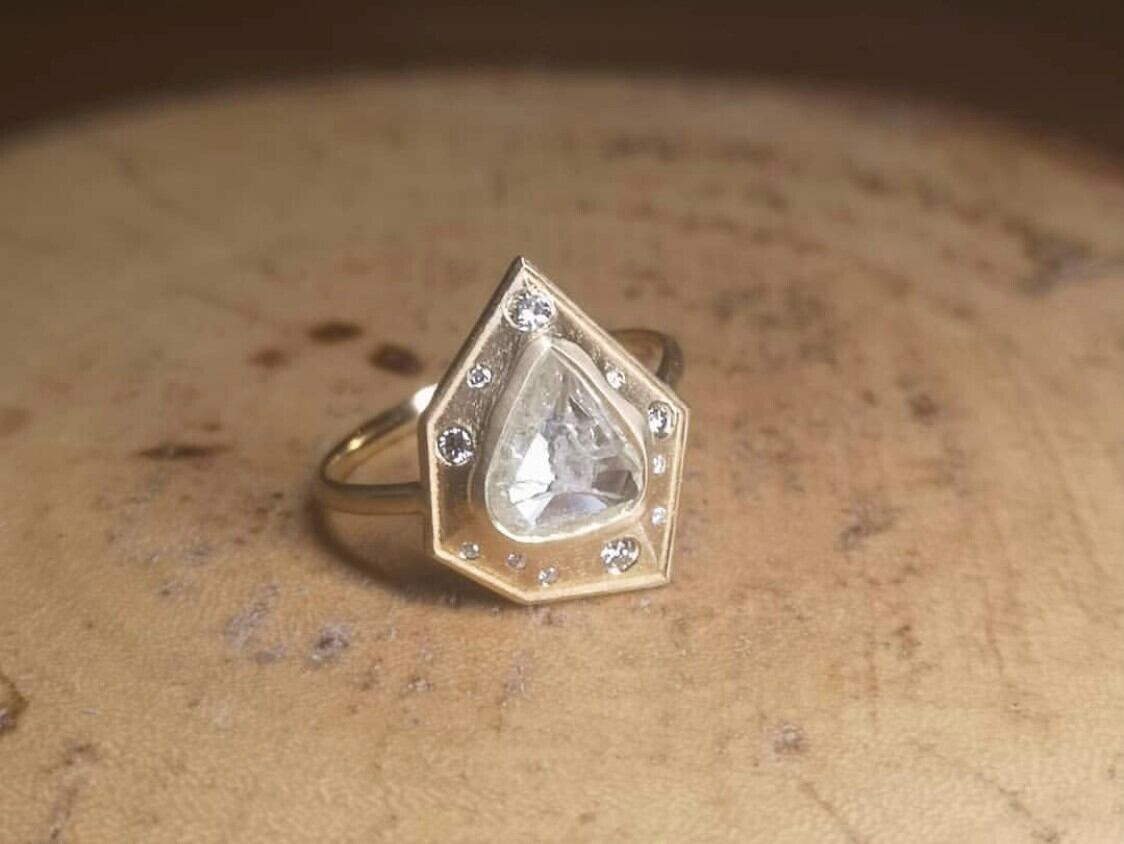大きなFragment(フラグメント)デザインのリングにはローズカットのライトイエローダイヤモンドが施してあります。デザイン性のあるクラックがリングの魅力を引き立てている美しいリングです。