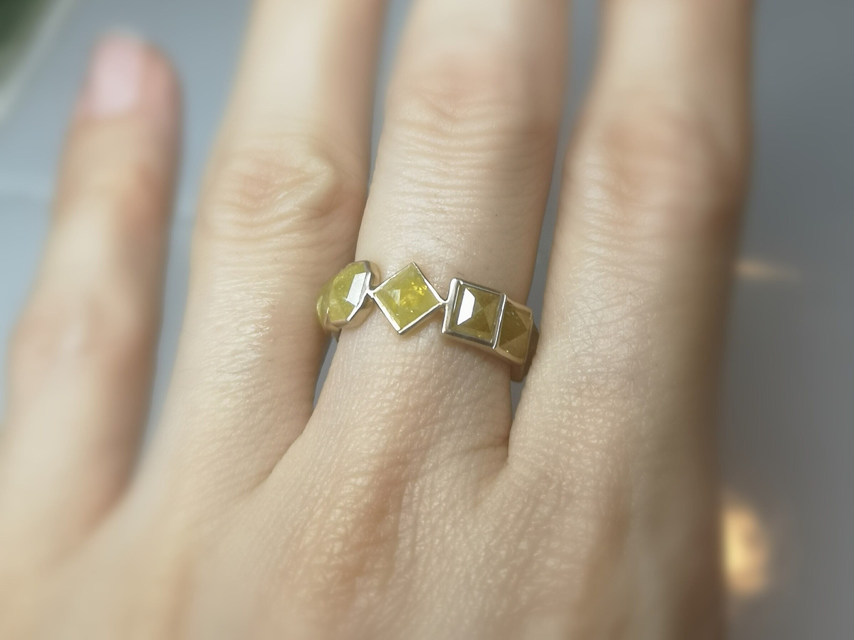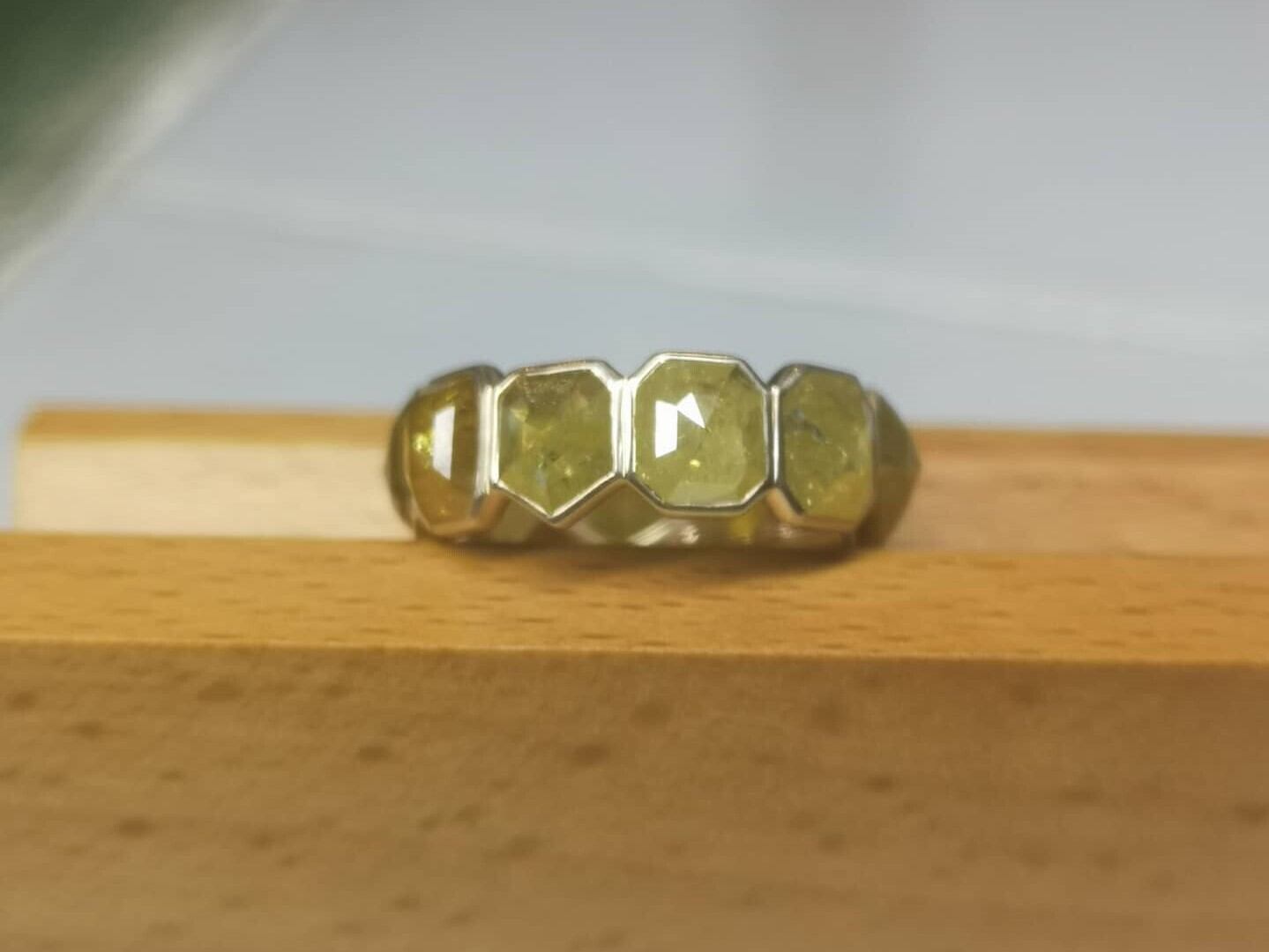 カラーダイヤモンドを5.36ctも使ったボリュームあるダイヤモンドフルエタニティリングは圧巻のジュエリーです。
