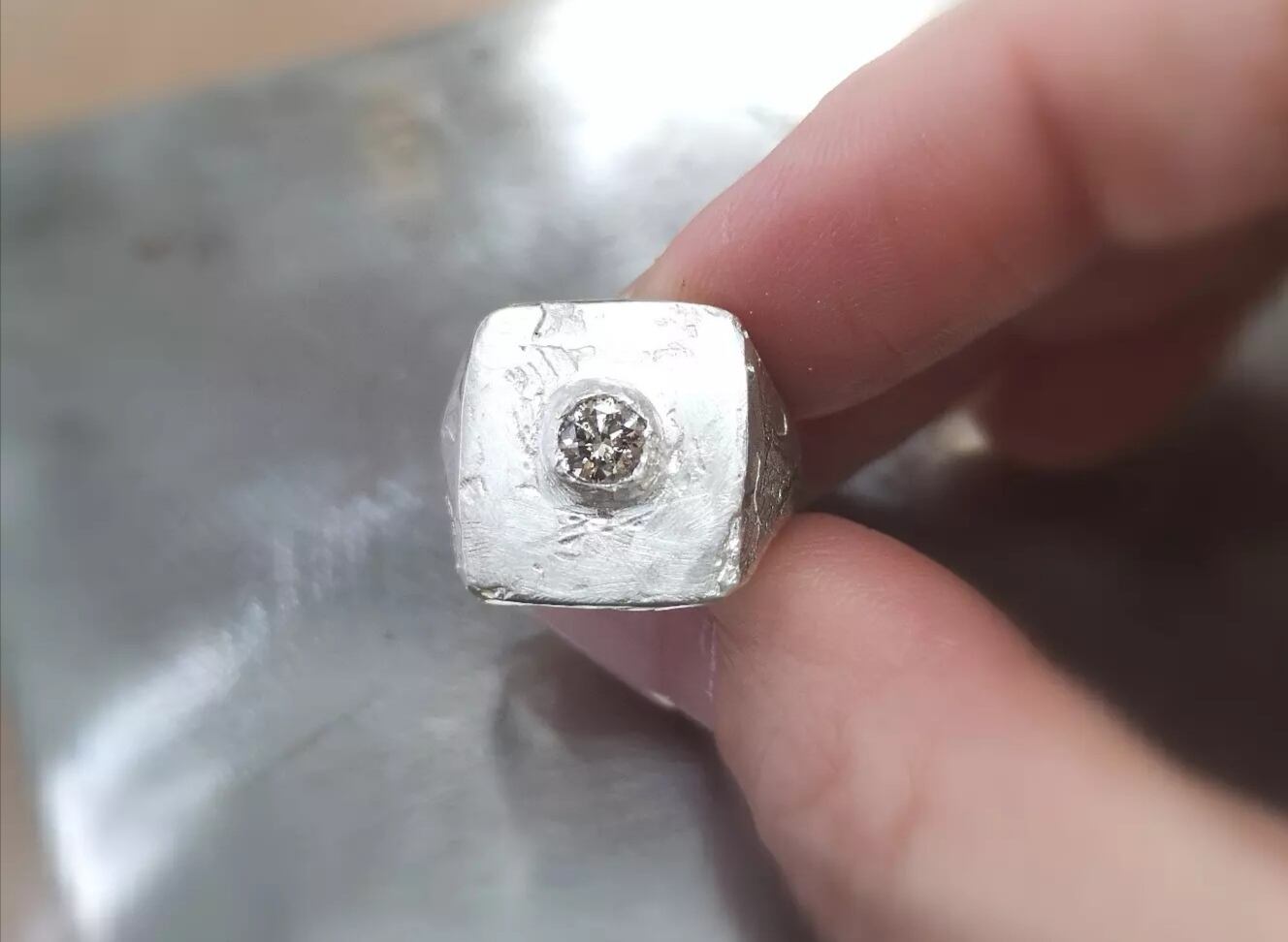 ボリュームあるスクエアのシグネットリング